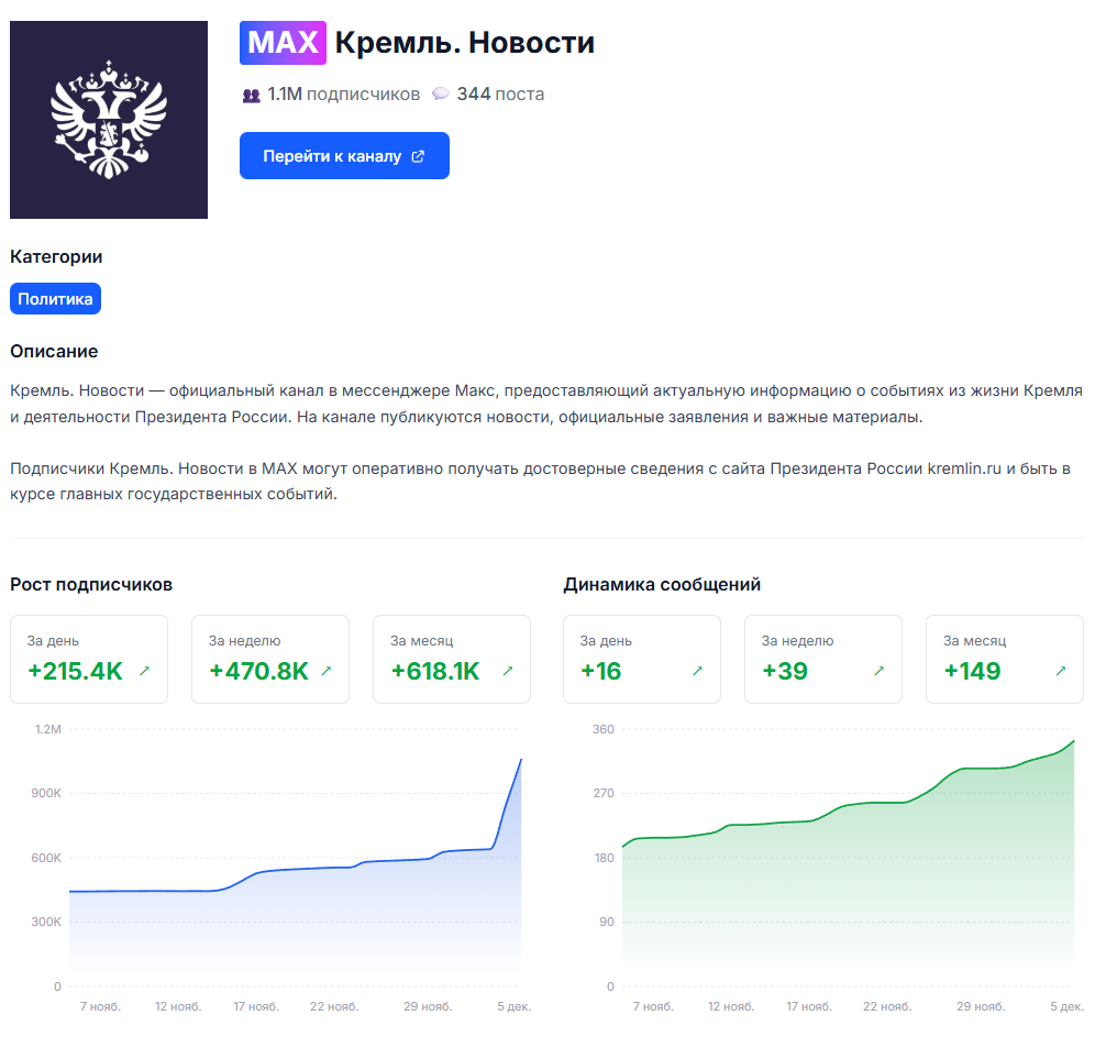 Официальный канал президента России «Кремль Новости» установил исторический рекорд в национальном мессенджере МАХ. Ресурс первым на платформе преодолел знаковую отметку в один миллион подписчиков.